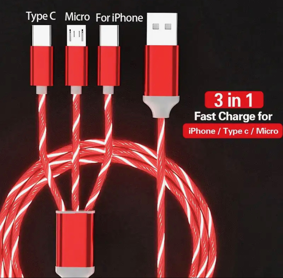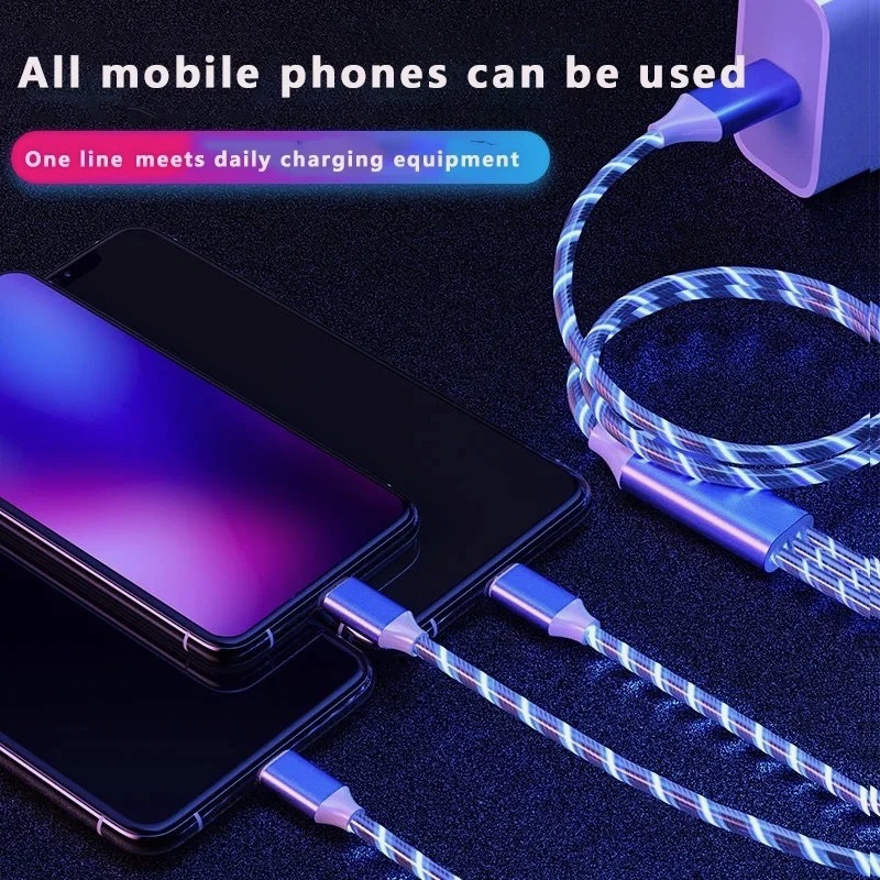 Experience fast and efficient charging with our Glowing LED Light 3 in 1 3A Fast Charging Cable. Designed for compatibility with Samsung, Xiaomi, Redmi, Huawei, Honor, and more, this versatile cable features Micro USB and Type C connectors, making it the perfect solution for all your charging needs. The built-in LED light not only adds a stylish touch but also makes it easy to find and connect your devices in the dark. With a robust 3A current, this cable ensures quick and reliable charging. Upgrade your charging experience with this durable, multi-functional USB cable today!