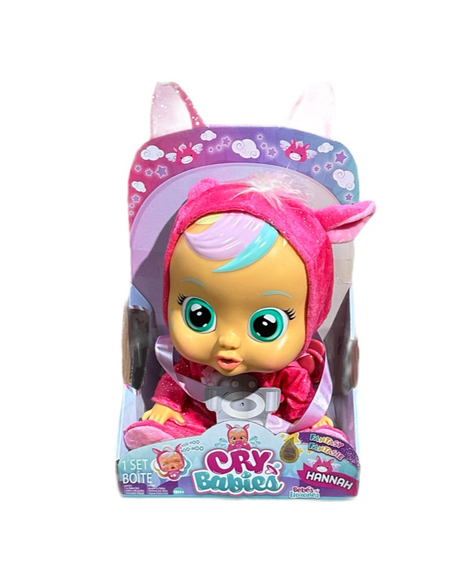 Licensed Cry Baby HannahCry Baby Hannah is an adorable doll that cries real tears when her pacifier is removed. Dressed in a cute outfit, she’s perfect for nurturing and imaginative play.