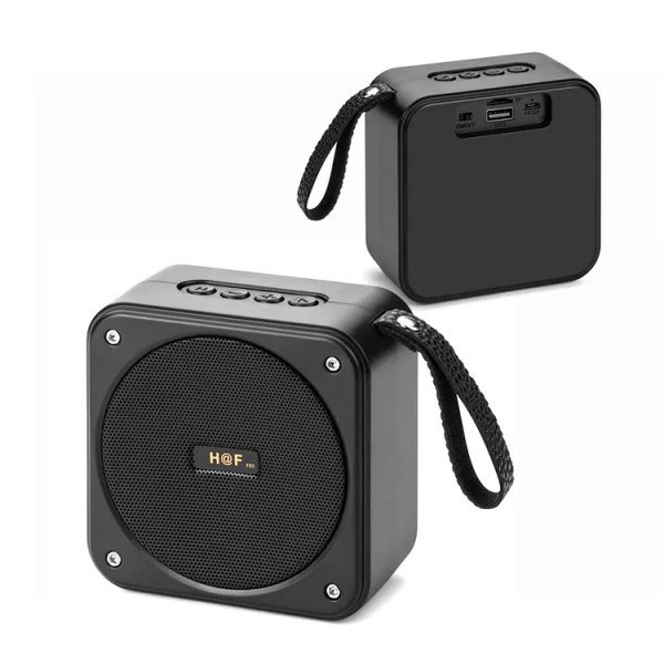 Portable Cube Bluetooth Speaker with FM Radio, USB & Micro SD Playback – HQ Sound in Compact Design HF-F82 for Universal Cell Phone And Bluetooth Device (Black)
