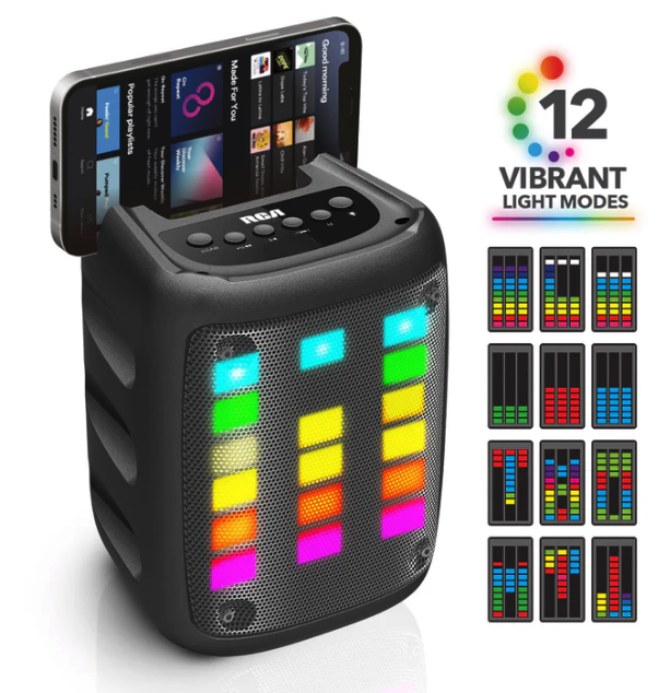 Light up the party with the RCA 3″ Tetris LED Light Bluetooth Speaker! This compact speaker features colorful Tetris-style LED lights that pulse to the beat of your music, creating an exciting atmosphere. With Bluetooth capability, it connects effortlessly to your devices, delivering powerful sound in a small package. Perfect for on-the-go fun or as a cool desk accessory.