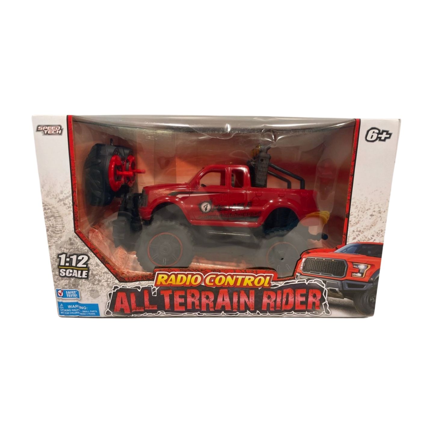 Experience the thrill of off-road adventures with our Speed Tech 1:12 Scale Radio Control All Terrain Rider! Designed for adventurers aged 6 and up, this battery-operated car delivers full-function control for endless excitement.